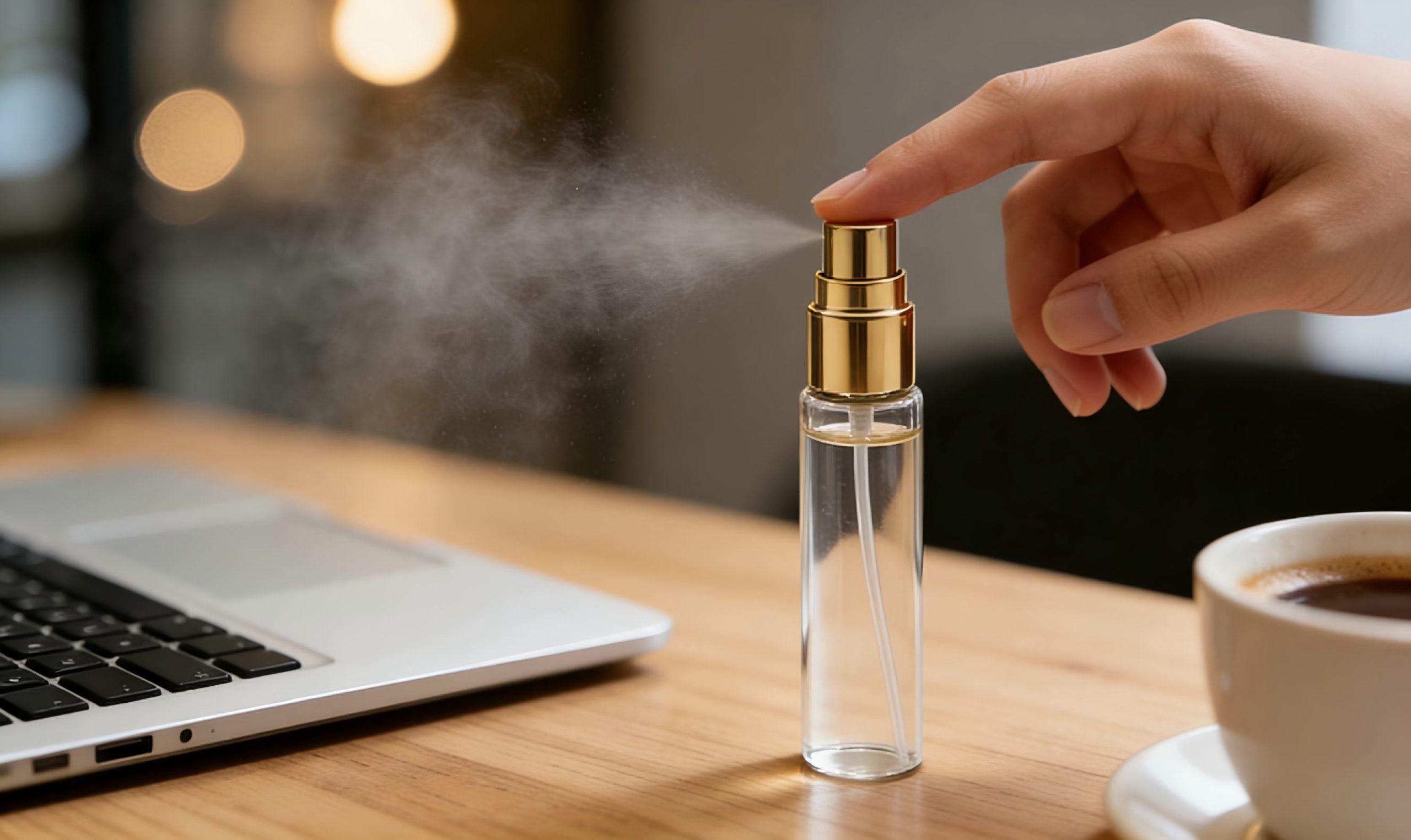 Take a sales rep on a week-long business trip, for instance. They fill the atomizer with a chamomile blend and spritz during hotel check-ins to unwind after meetings. Or, a student during exam season uses a rosemary mix at their desk to sharpen focus.